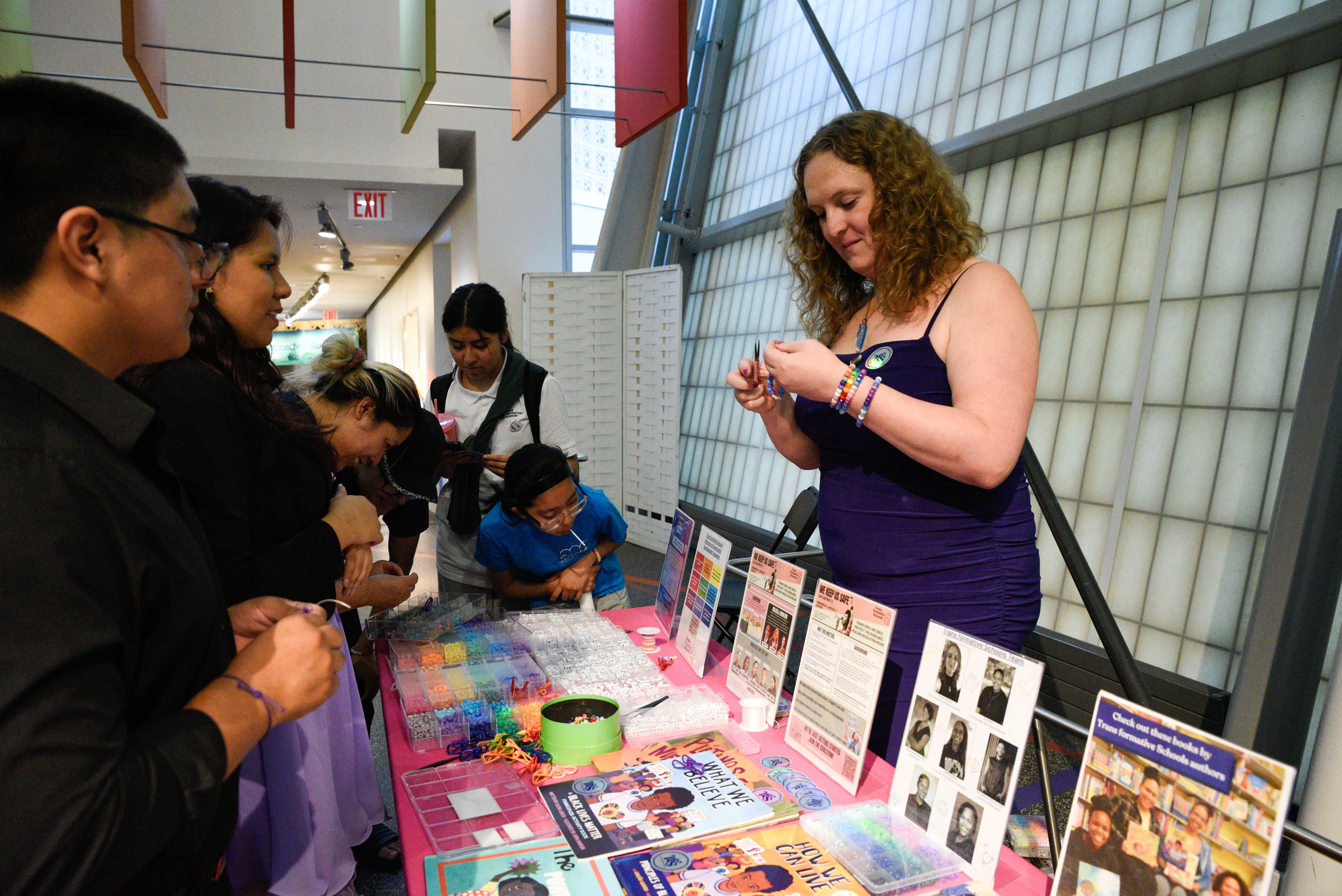 In terms of what one queer and transgender educator who had a table set up covered with gender-affirming books and friendship bracelet-making station was hoping to get out of the event: “trans and queer joy.”