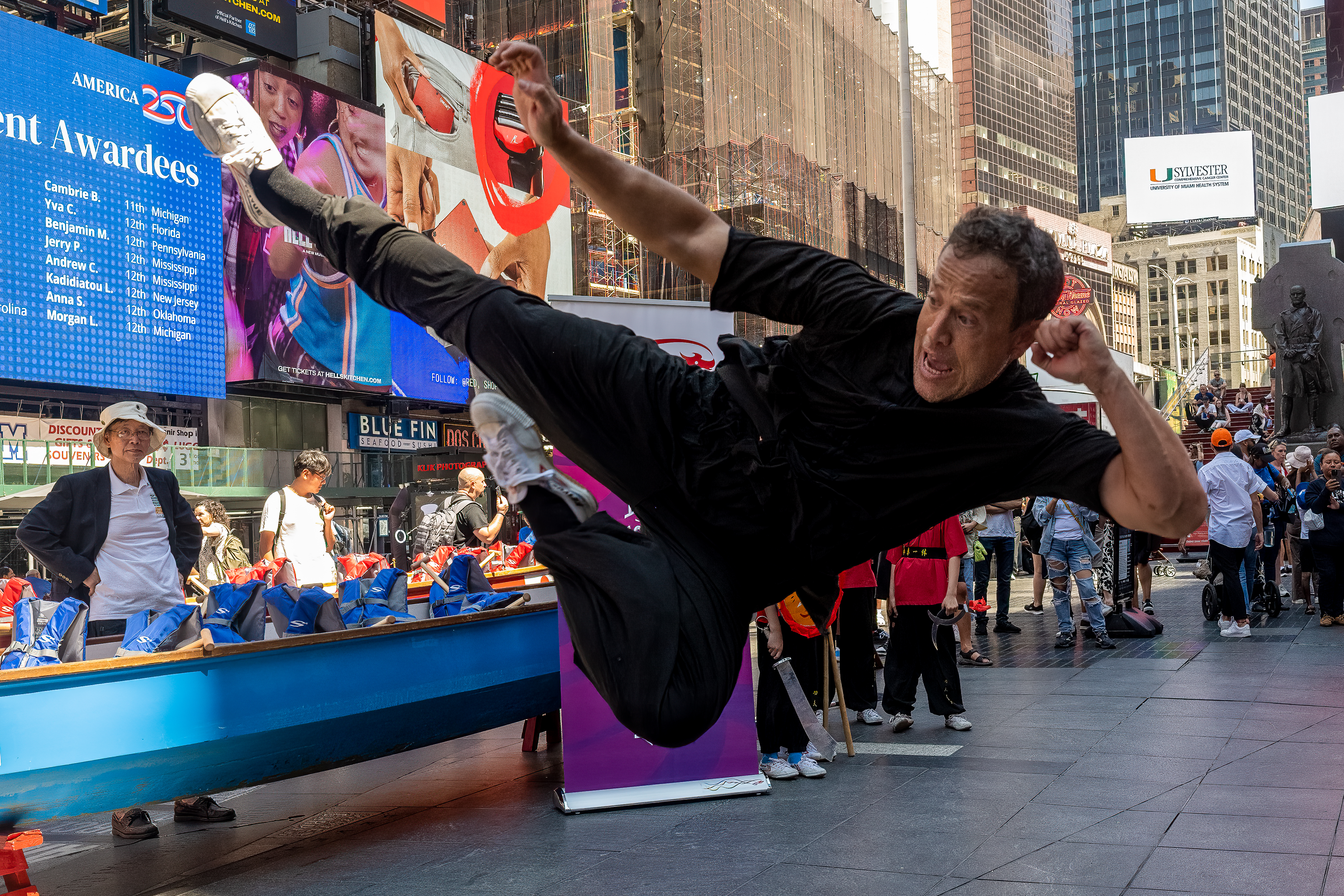 Festivities included a performance by the New York Shaolin Temple Kung Fu Center members, who showcased their acrobatic martial arts skills in the “Crossroads of the World” for dignitaries and guests.