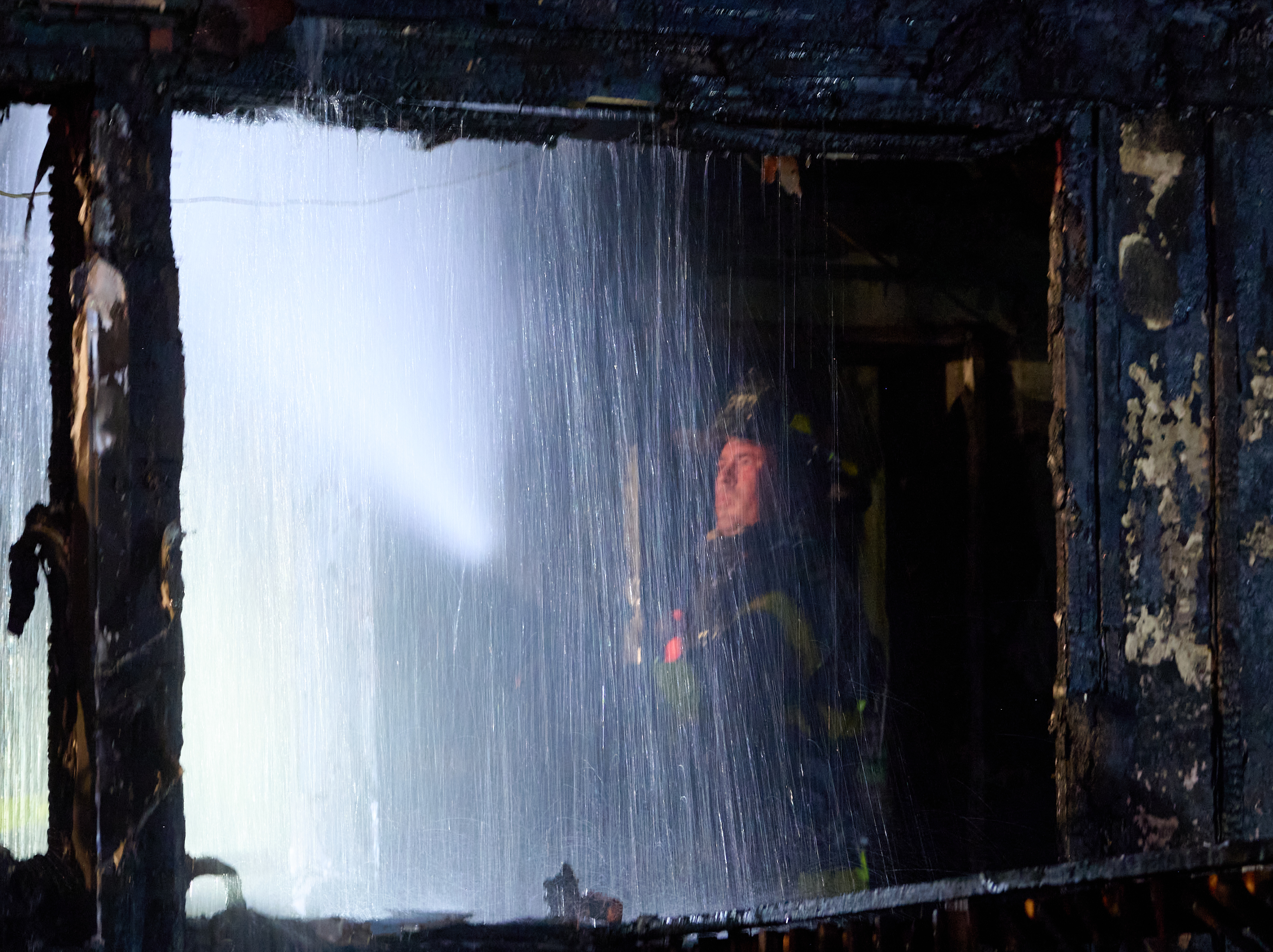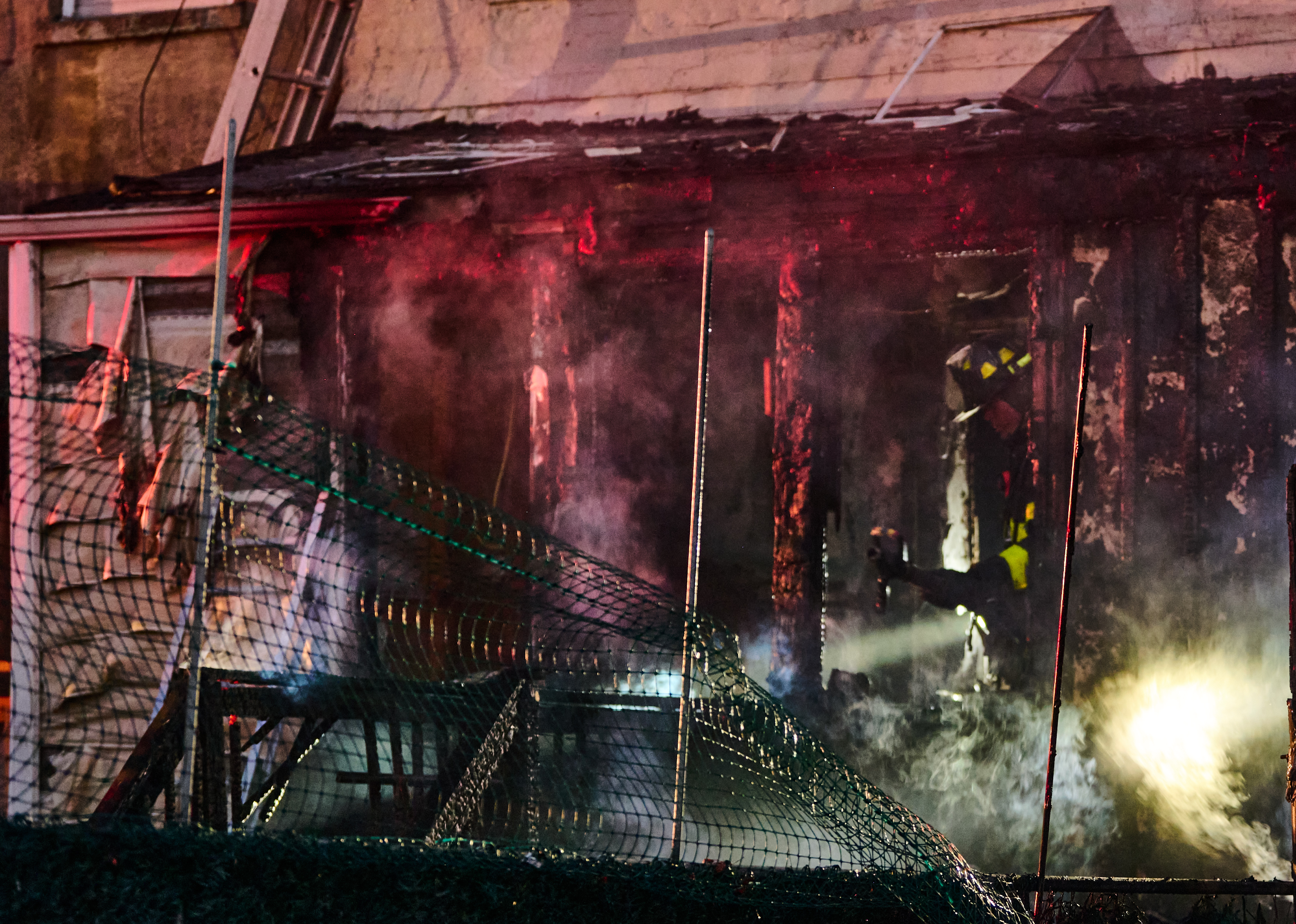 Firefighters remained on the scene conducting overhaul operations and checking for hotspots.