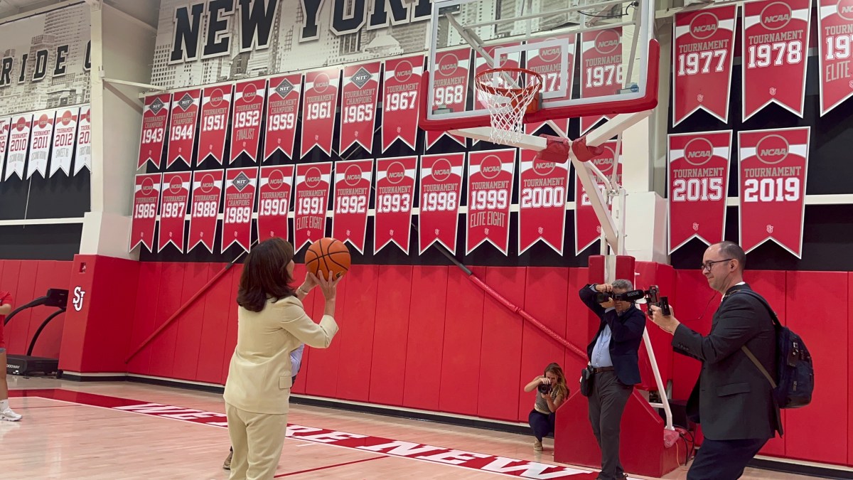 Hochul met student-athletes and shot some hoops at the soon-to-be renovated Taffner Fieldhouse. The Taffner project is part of $3 million HeCap funding to support the construction of a new basketball practice facility. The project will be developed in conjunction with the renovation of the existing Taffner Field House. The basketball facility will serve as an everyday practice center for the Red Storm’s men’s and women’s basketball programs.