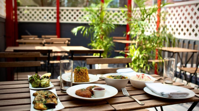 Oh! Calcutta also boasts an enclosed outdoor dining area, while the storefront features a white marble countertop for takeout orders.