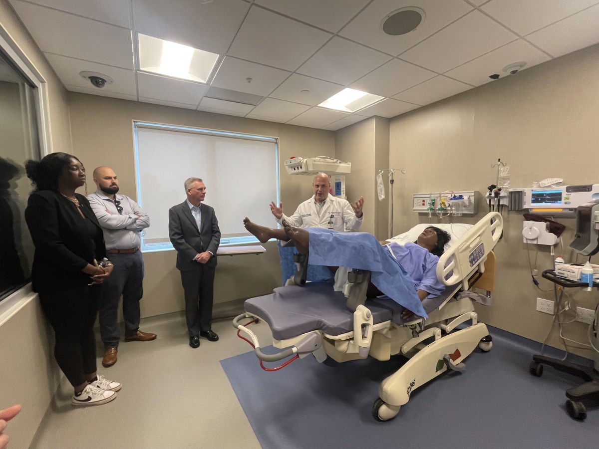 Led by Nancy Leghart, Executive Director of St. John’s ICARE Foundation, the tour included David Clarke, Senior Vice President from M&T Bank Healthcare Commercial Banking, and five of his colleagues. The group was introduced to EHS’s advanced simulation technology by Eric Stern, Director of Simulation, who demonstrated the VICTORIA S2200 labor and delivery patient simulator, a key asset in the health system’s educational and training programs.