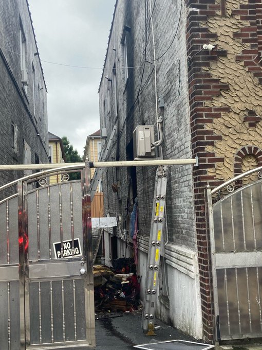 Inspectors from the city Department of Buildings (DOB) observed extensive fire damage, including an open roof and windows removed at the 2-story, two-family building. During their structural stability inspection, they determined that the second-floor level had been illegally converted from one apartment into two apartments with no permit for the work and they issued violations to the building owner related to the illegal dwelling. DOB also issued a full vacate order to the building due to the fire damage. Con Edison and National Grid cut services to the building.