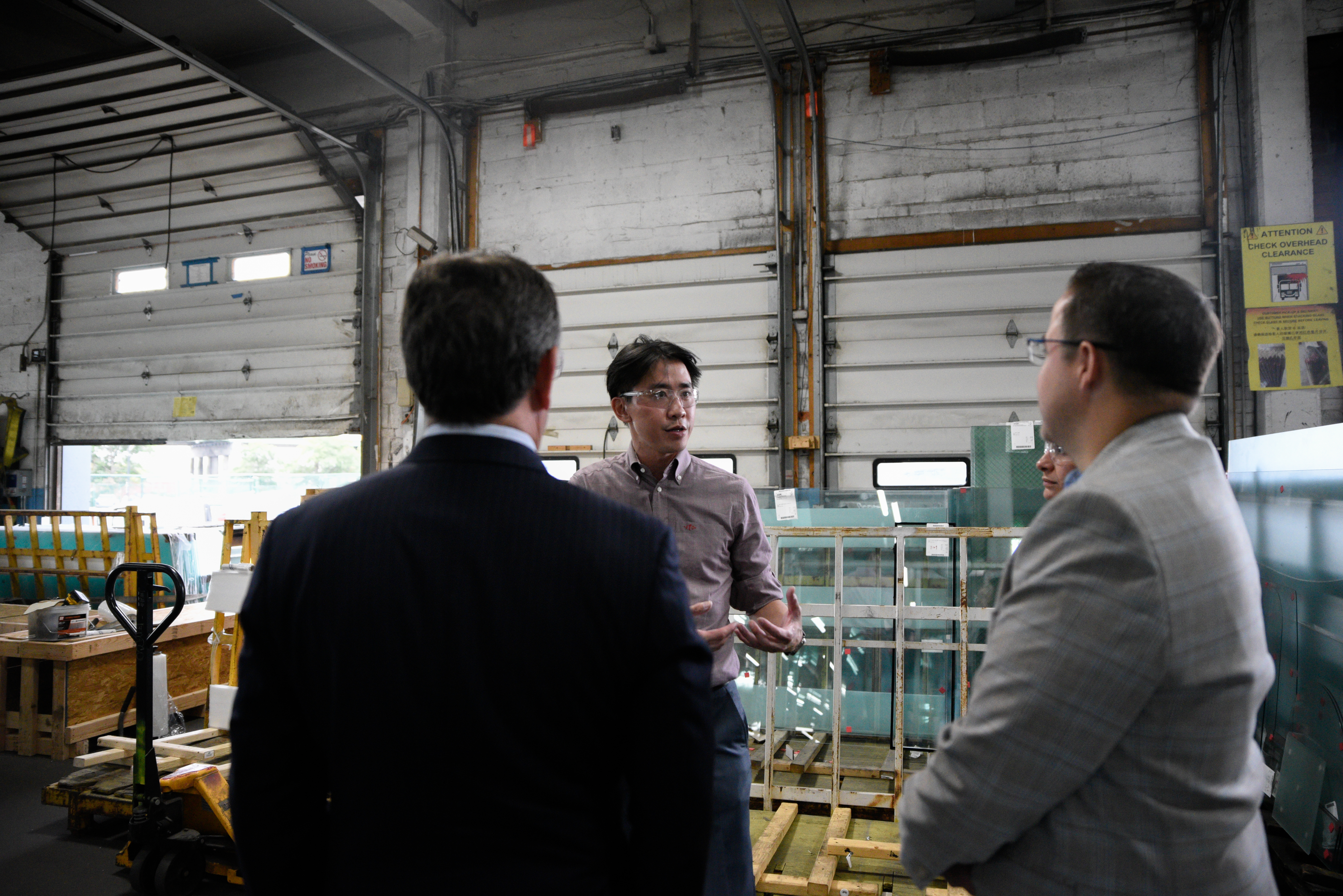 During the tour, Chen explained the glass tempering process involving lamination, similar to pressure cooking, and break tests to meet safety requirements. He explained that while the architectural market shifts toward sustainability, the old-fashioned, in-person customer service way of doing business has not changed.