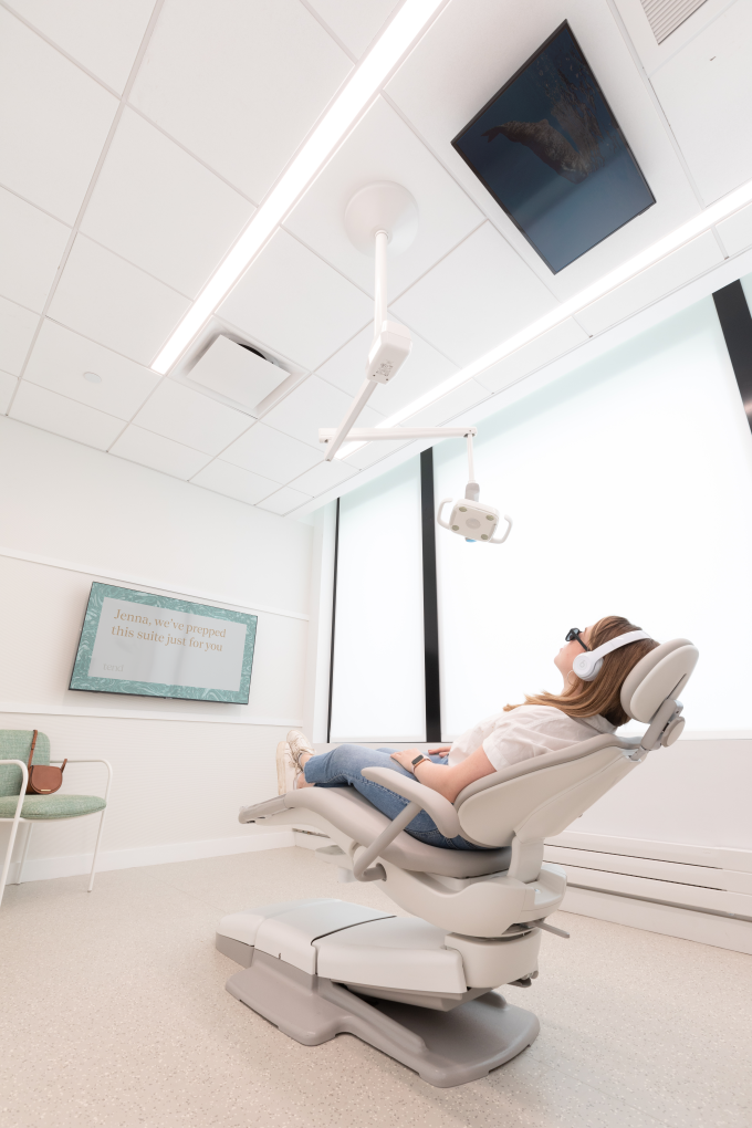 “Our studios are thoughtfully designed, creating a calm, inviting environment that eases anxiety. We also leverage technology to transform the whole experience, with easy online booking, digital intake (which means no waiting when you arrive), and being able to watch your favorite show with noise-cancelling headphones while you get your cleaning.”
