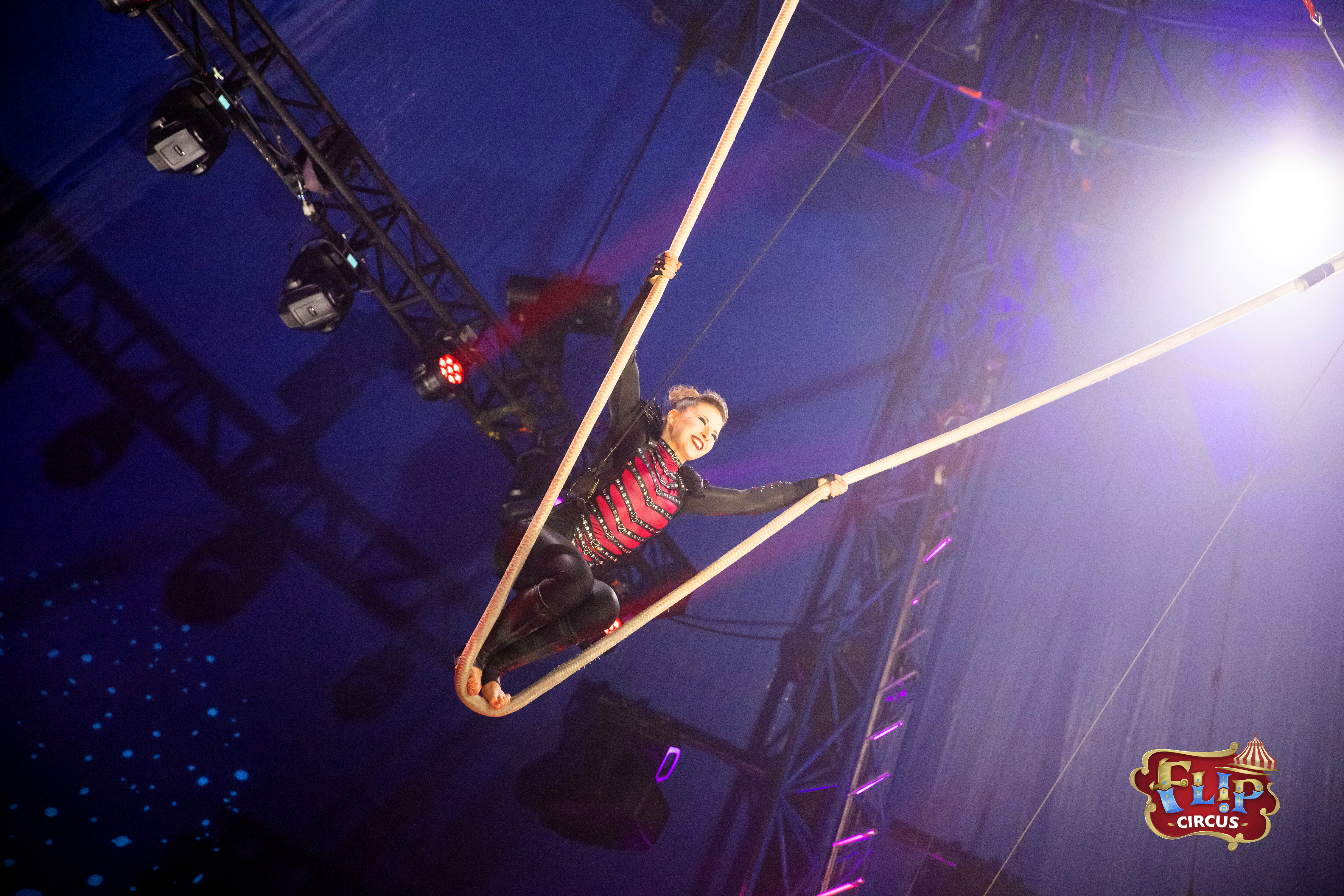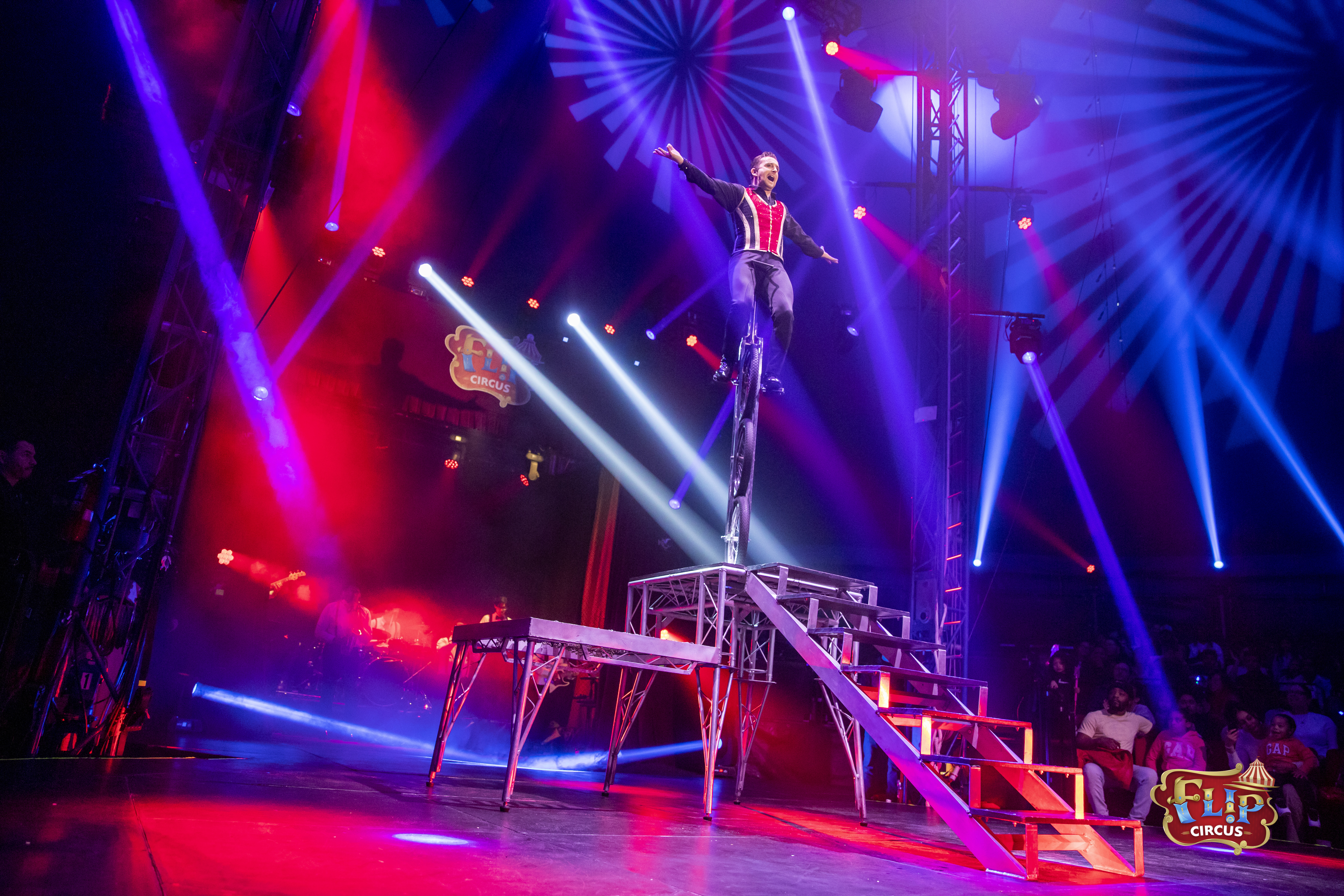Fl!p Circus provides an intimate big top experience through its eclectic mix of incredible international performers. The red and white striped big top tent is climate-controlled and has 800 seats, with all being no more than 50 feet away from the ring.