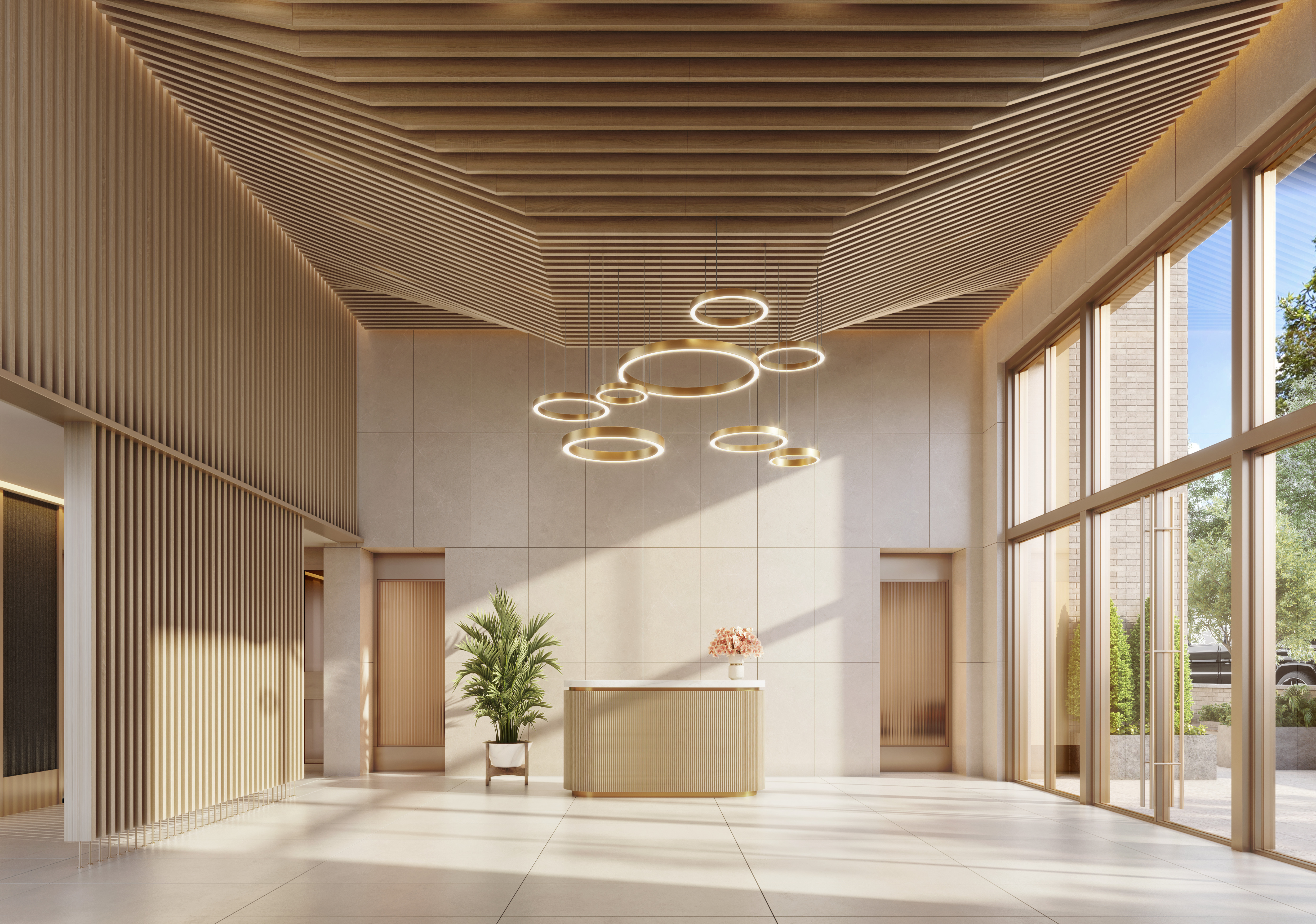 The lobby of Centric. Rendering by Redundant Pixel, LLC.