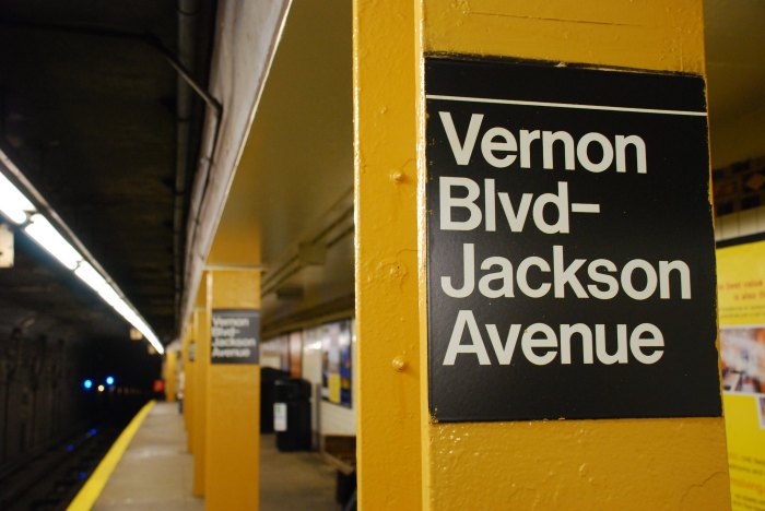 The suspects violently shoved the victim as the 7 train approached the Vernon Boulevard-Jackson Avenue subway station and forcibly removed his cell phone and cash. Photo courtesy of MTA