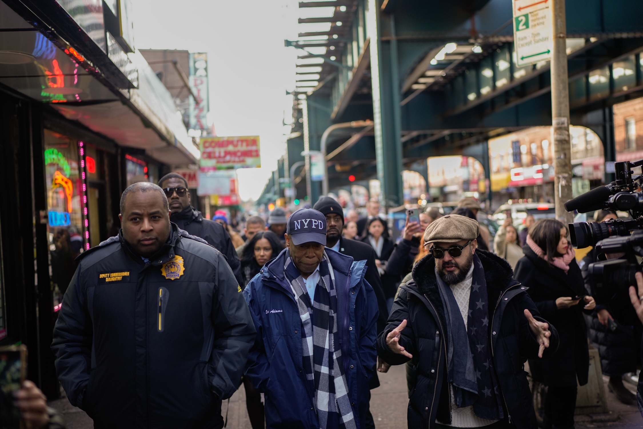 Adams and Moya visit Roosevelt Avenue. Photo: Office of Council Member Francisco Moya