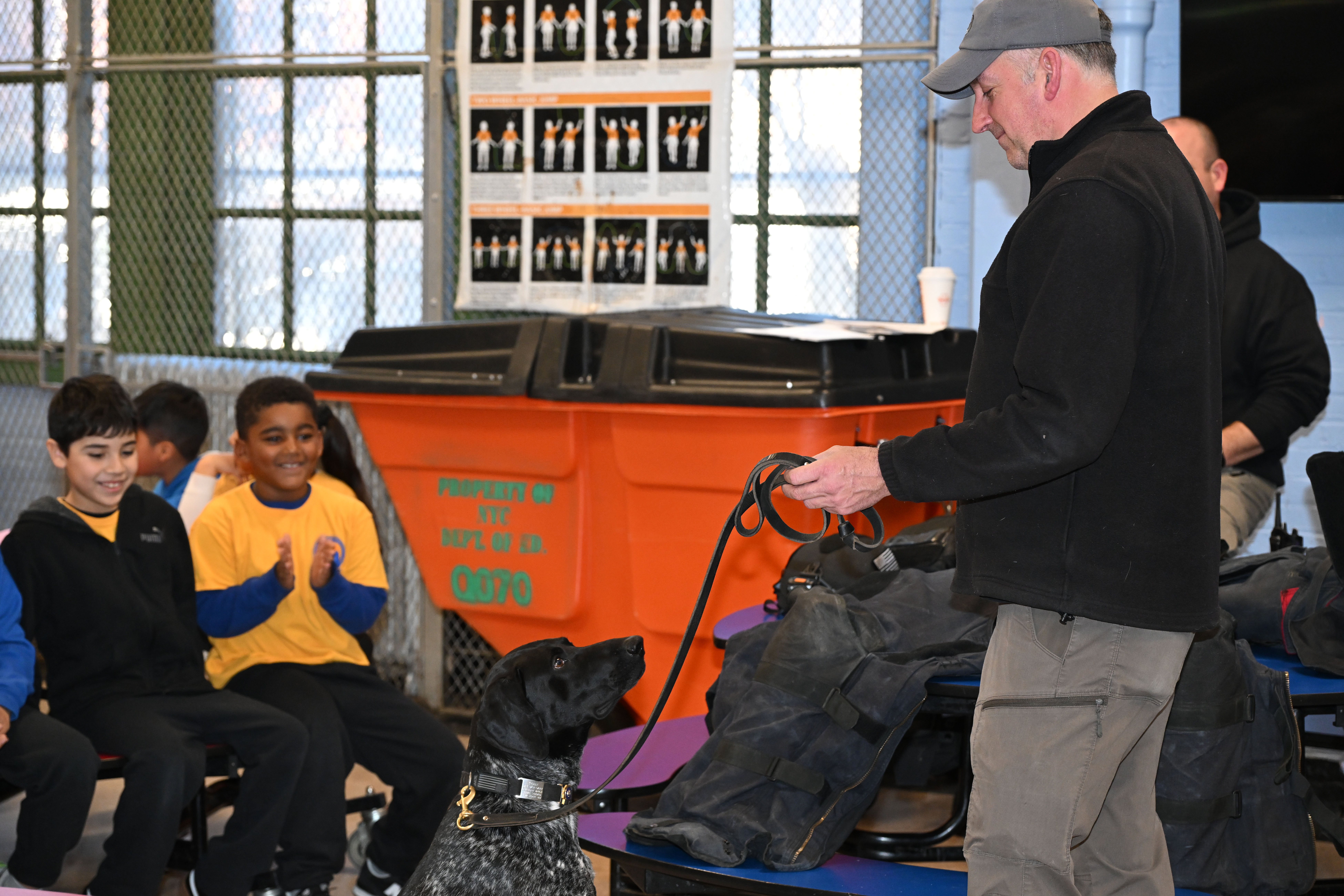 NYPD Detective Sean McKay with a bomb squad dog. Photo by Ramy Mahmoud.