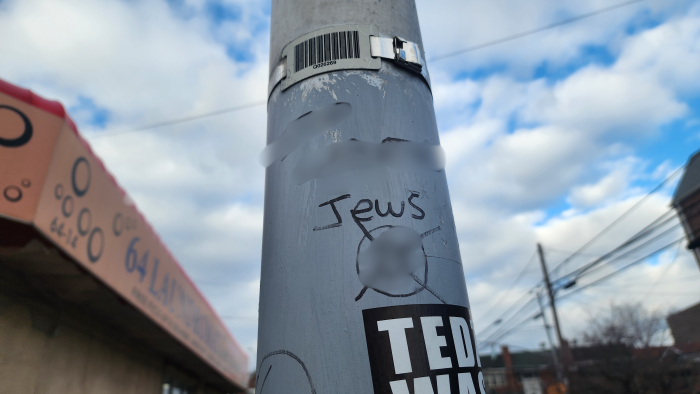 A Woodside resident who wished to remain anonymous said they first encountered the antisemitic graffiti in November and that it had regularly appeared along lampposts on Woodside Avenue between 61st Street and 65th Street.