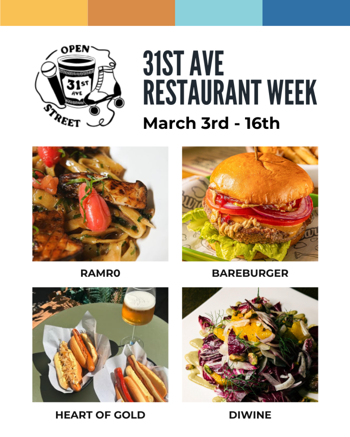 Visit 31st Avenue Open Street’s website for more details on Restaurant Week specials and participating restaurants.