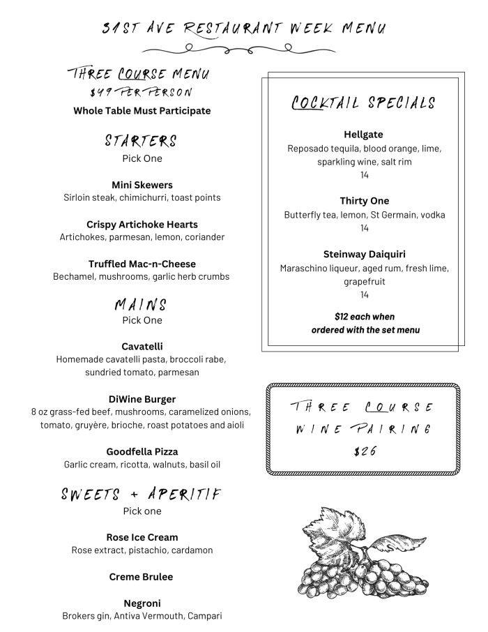 DiWine specials for Restaurant Week. Photo Credit: 31st Ave. Open Street.