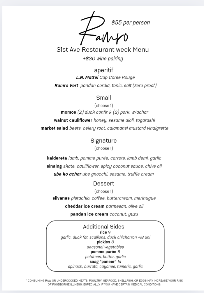 Ramro specials for Restaurant Week. Photo Credit: 31st Ave. Open Street.