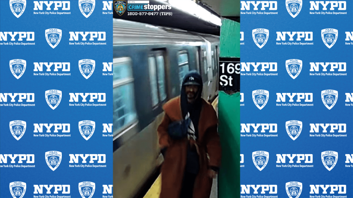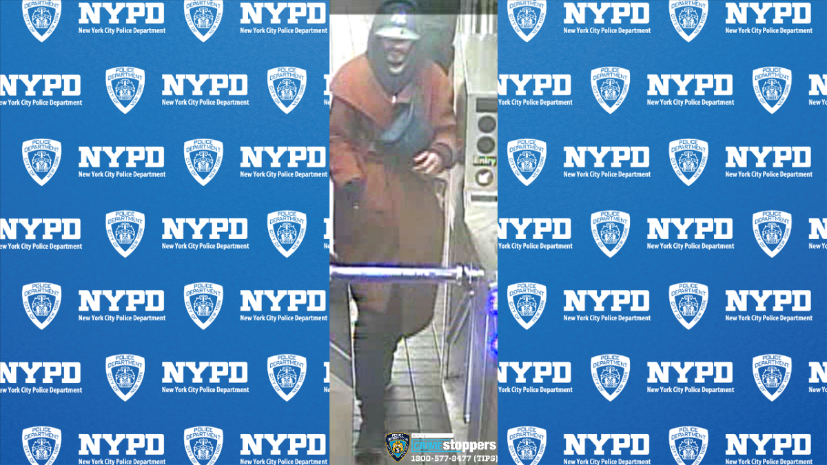 The NYPD released a series of five surveillance images of the culprit on Thursday, showing him inside the subway car, on the platform at the Parsons Boulevard station, and passing through the turnstile. He has a dark beard and mustache and wore a New York Yankees baseball cap under a dark hooded sweatshirt, a burnt-orange overcoat, black pants, and dark sneakers.