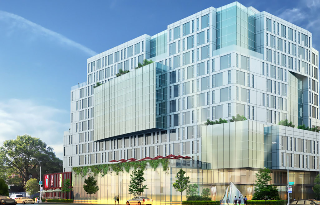 Rendering courtesy of Century Development GroupA one-story supermarket and surface-level parking lot had previously occupied 35-32 Leavitt St. Raymond Chan Architect is the designer of the Northern Tower. Century Development Group, the developers of the Northern Tower, signed an agreement in 2016 with Starwood Hotels and Resorts, shortly after it was purchased by Marriot International, to build this new property. Mortgage lender Maxim Capital Group provided a $65.7 million construction loan to Century Development Group in 2022.
