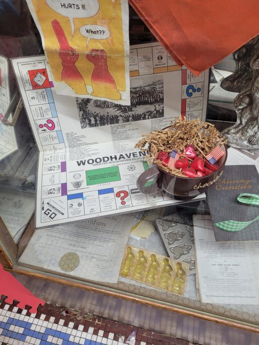 It was originally an ice cream parlor and candy store, but changing trends in the popularity of ice cream parlors made the family focus on the chocolatier aspect. When customers visit the store, they can still see the areas of the floor where the stools initially stood when pointed out, as well as where the counter once was. A section of stained glass remains, as does the inlaid wood. A glass case at the front of the store displays newspaper clippings, original metal molds for chocolate with intricate designs no longer in use, and a special Woodhaven version of Monopoly from 1978, which shows “Schmidt’s Confectionary” as one of the properties on the board game.