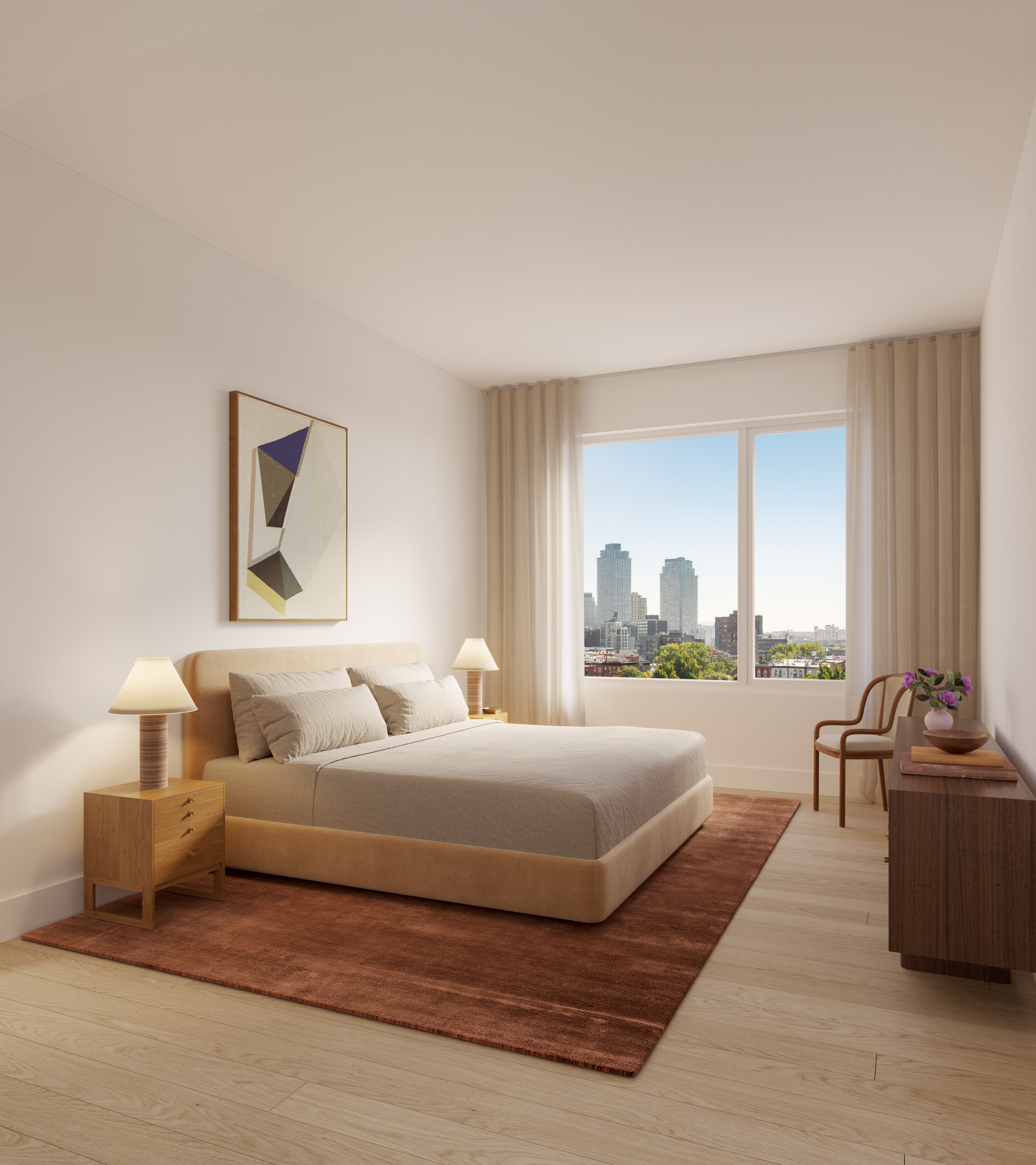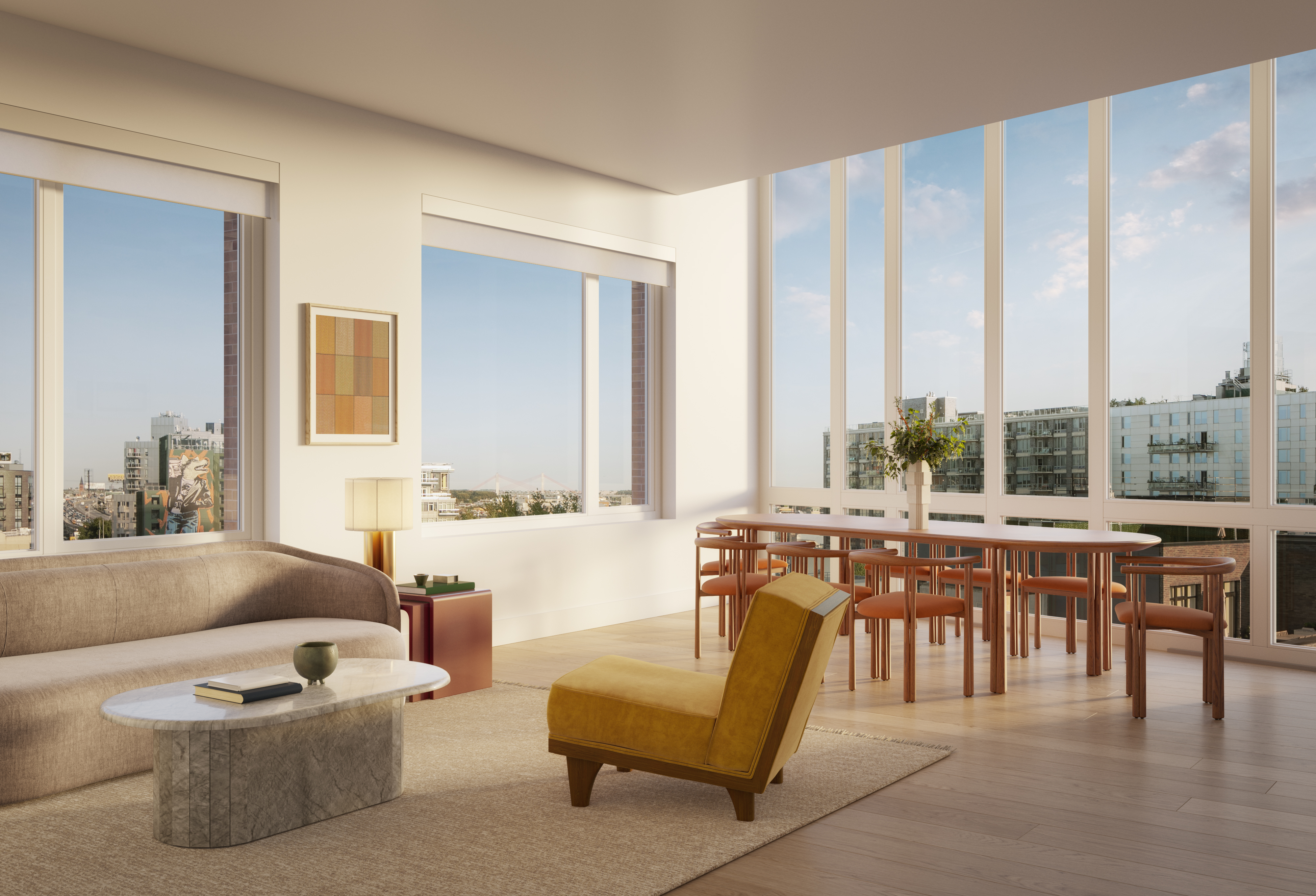 Each residence will feature quartz countertops and backsplashes, solar shades, an integrated dishwasher, a washer and dryer and a Level Smart Home System. Select units will also have a quartz waterfall-edge kitchen island, a private terrace, a customized closet buildout and window treatments for privacy. There is also an exclusive selection of units called “The Collection,” which have motorized shades, dimmer switches, enhanced lighting and upgraded tile finishes.