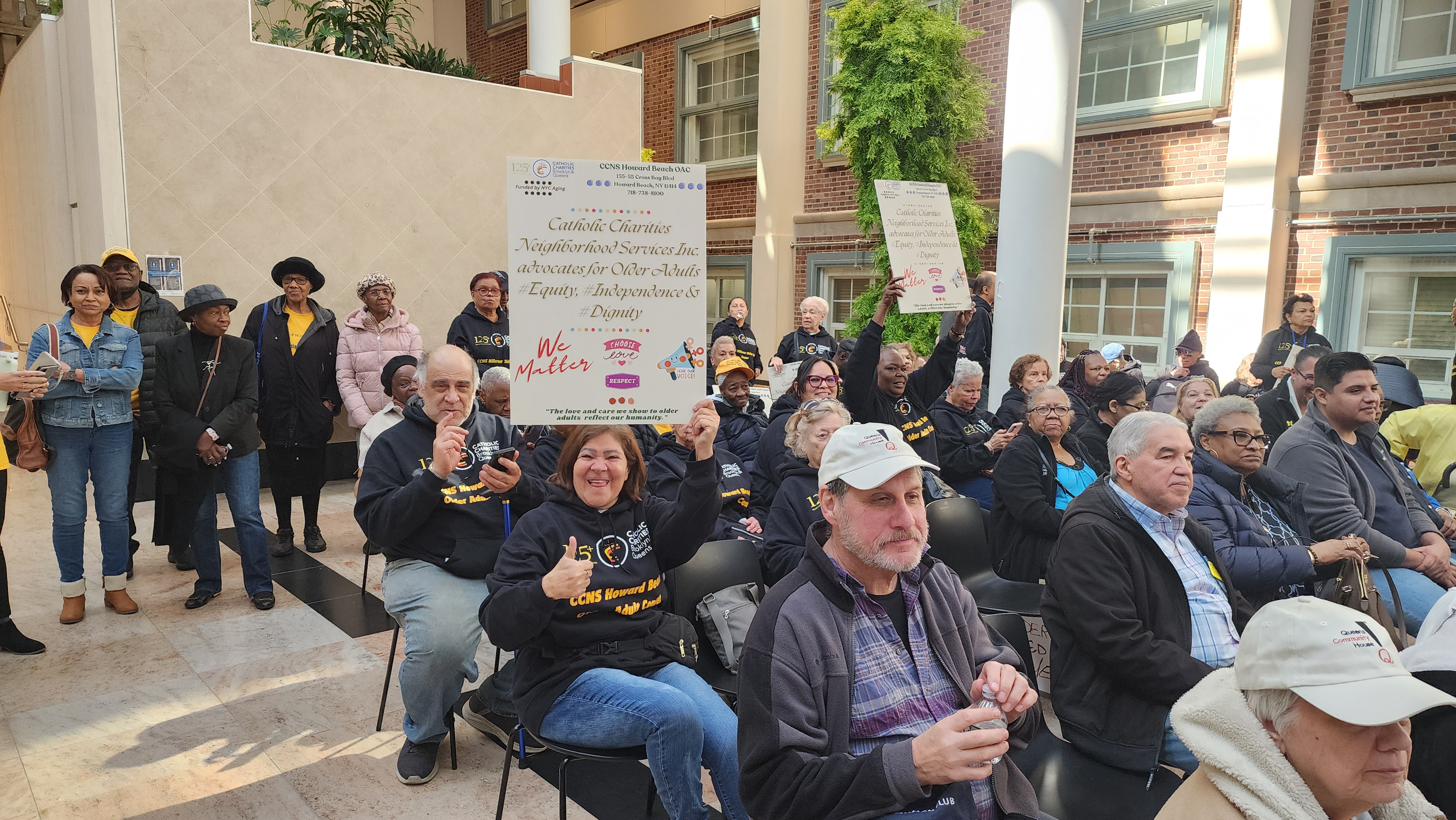 A coalition consisting of dozens of senior groups from across the borough, including Sunnyside Community Services, Rochdale Village Social Services Inc., Services Now for Adult Persons, Inc., and Jacob A. Riis Neighborhood Settlement, attended Wednesday’s rally. The coalition called for increased funding for senior centers across the city. Many participants stated that numerous senior centers are already badly underfunded.