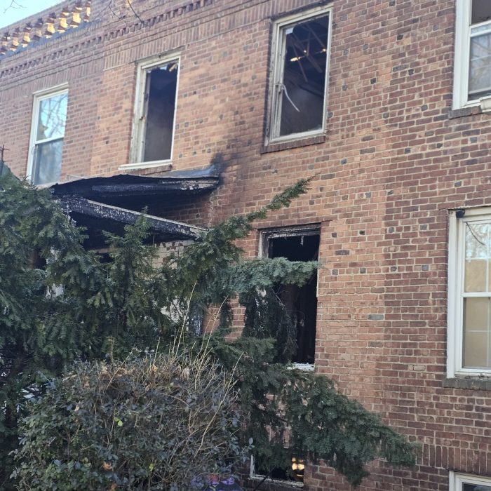 The DOB inspectors also observed minor fire damage to the front door and windows of the attached property at 39-09 46th St. As a result, the DOB inspectors issued a full vacate order to 39-11 46th St. and an emergency order to seal the property in the interest of public safety.