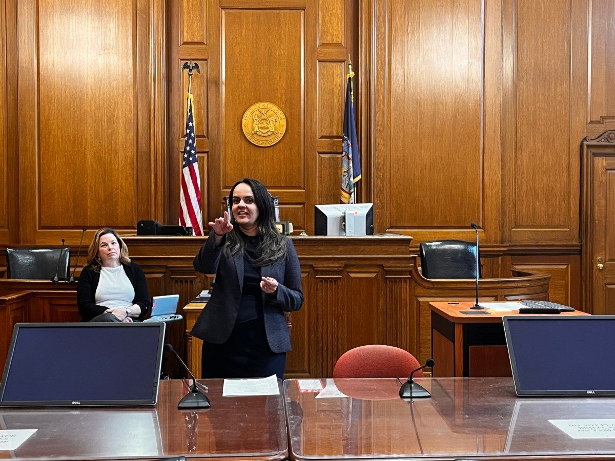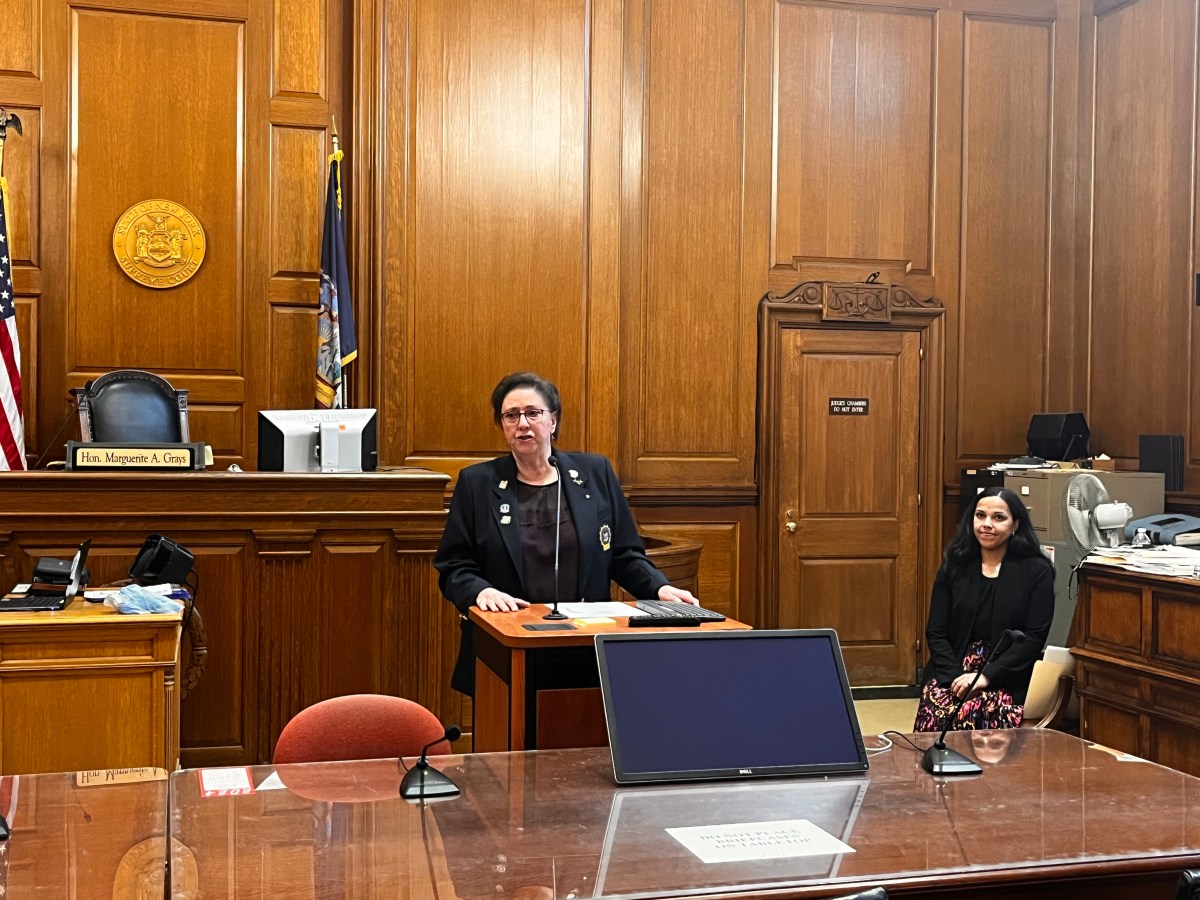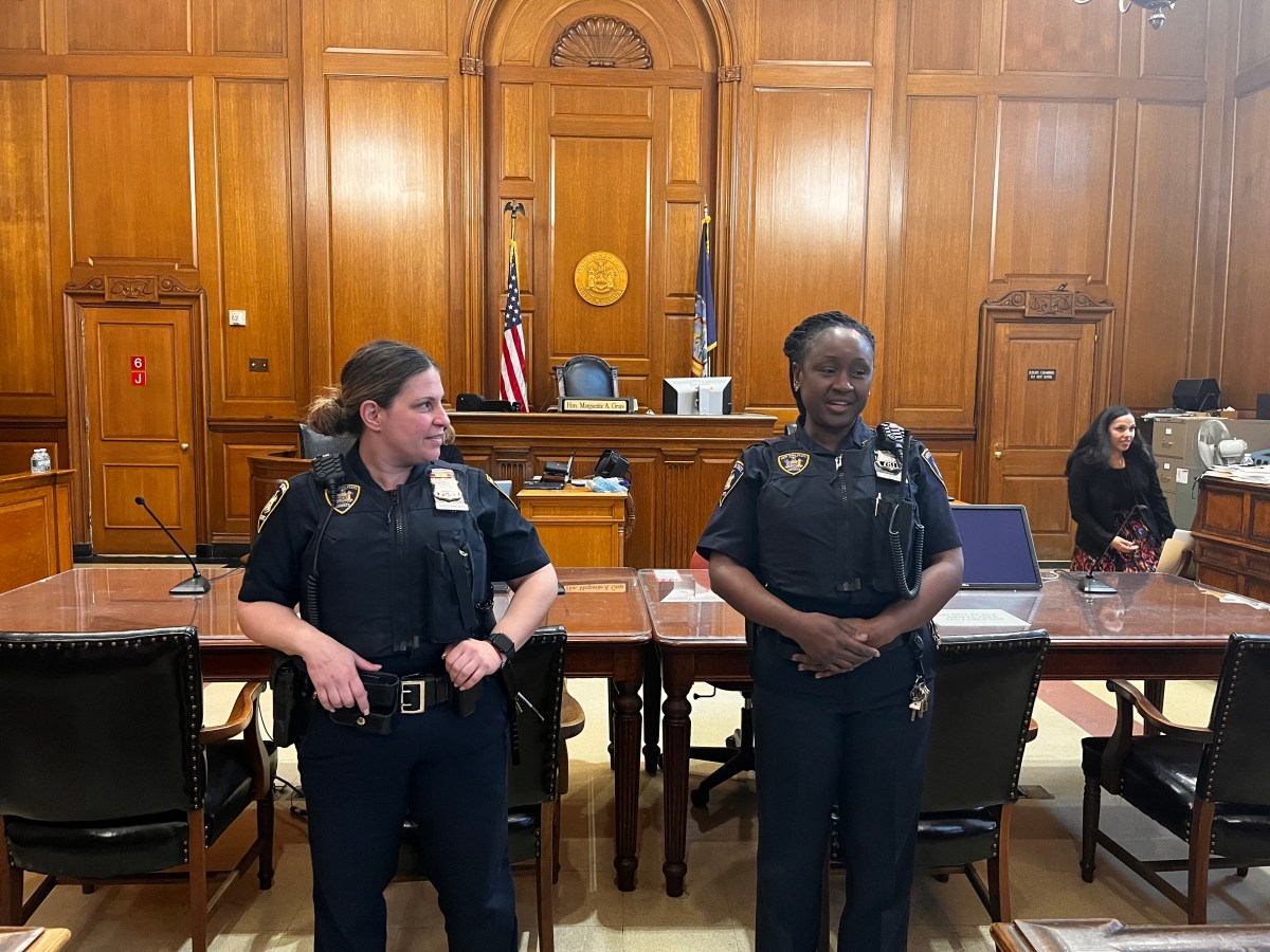 Court officers Coreen A. Fortune and Roseanne Sanclemente provided insight into their roles in maintaining courtroom safety. Fortune, originally from Trinidad and Tobago, has served as a court officer for 18 years. “It’s a great job. In the beginning, I didn’t know what I wanted to do, but 18 years later, here I am,” she said.