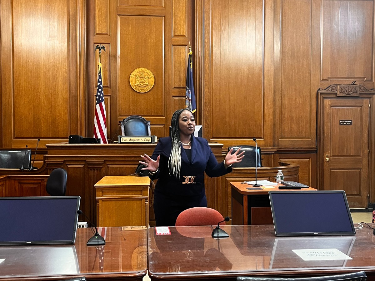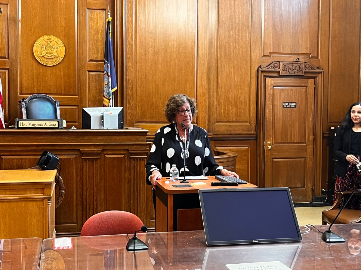 Bradley shared some of her work behind the scenes to help judges. As a chief court attorney, she oversees a department of 24 people, drafts decisions for judges, conducts research, and works on pretrial and matrimonial trials.