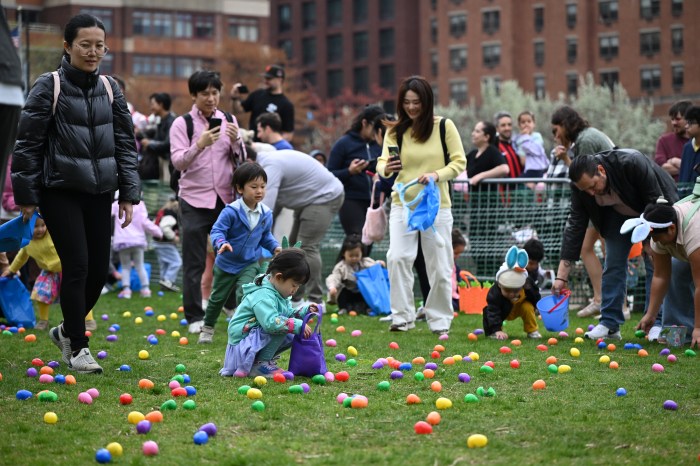Children participate in an age-specific egg hunt during the Queens Easter Festival at Gantry Plaza State Park on April 19, 2025. Photos by Ramy Mahmoud