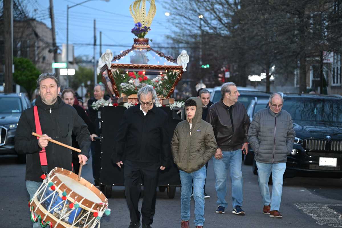 On Friday, participants carried religious banners and statues, accompanied by music and recitations. A second club joined the event after marching from another location to converge at the starting point, continuing the joint tradition of collaboration among different Italian-American associations.