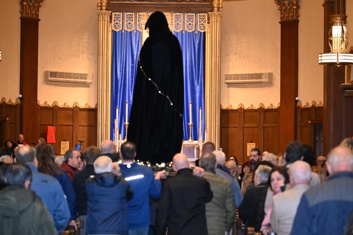 The procession began at 7 p.m. at the corner of Forest Avenue and Palmetto Street, outside the headquarters of the Associazione Concordia Partanna, located at 66-23 Forest Ave. Participants walked through the neighborhood toward Our Lady of Hope Roman Catholic Church, honoring the solemn observance of Good Friday with prayers and hymns along the route.