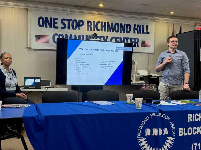 On April 30, Addabbo led an interactive stress relief workshop in commemoration of Stress Relief Awareness Month. The workshop, which was open to the public, took place during the Richmond Hill Block Association’s monthly meeting and featured mental health professionals from Northwell Health Long Island Jewish Forest Hills.