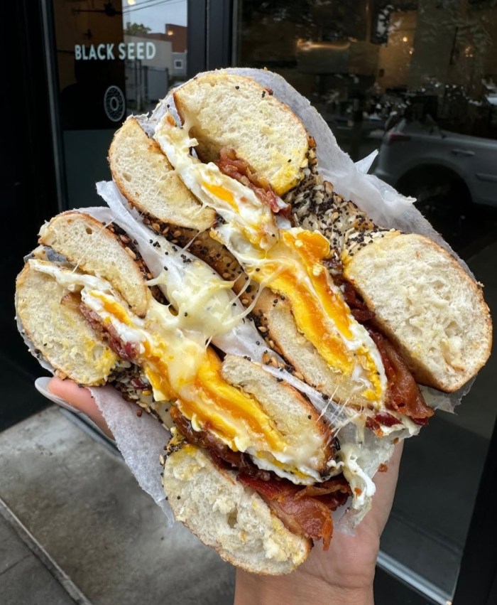 Black Seed Bagel’s popular bacon and egg and cheese sandwich. Photo credit: Black Seed Bagel.