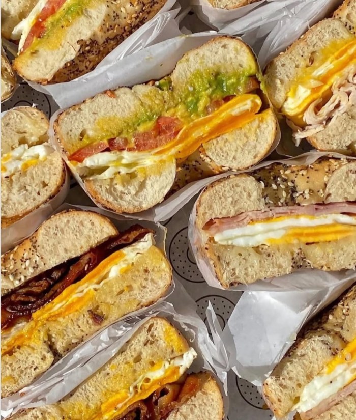 An array of delicious sandwiches for breakfast and lunch. Photo credit: Black Seed Bagel.