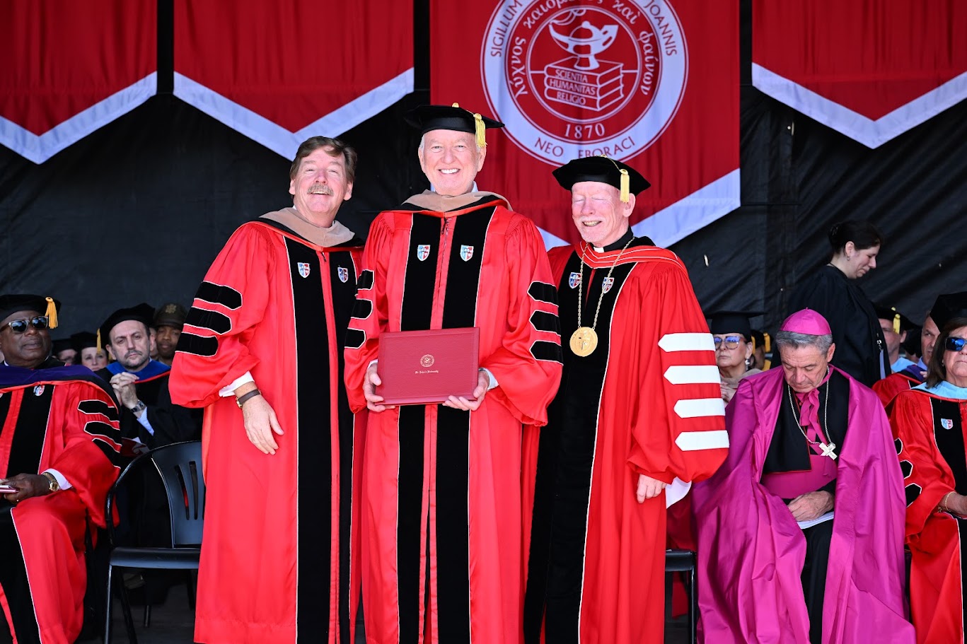 University President Rev. Brian J. Shanley, O.P., urged graduates to carry forward the institution’s Vincentian values. “The real test of gratitude is not what you feel today, but what you do for the rest of your lives,” he said. “Your giving to others of your time, talents, and treasures…is the essence of the Catholic and Vincentian tradition.”