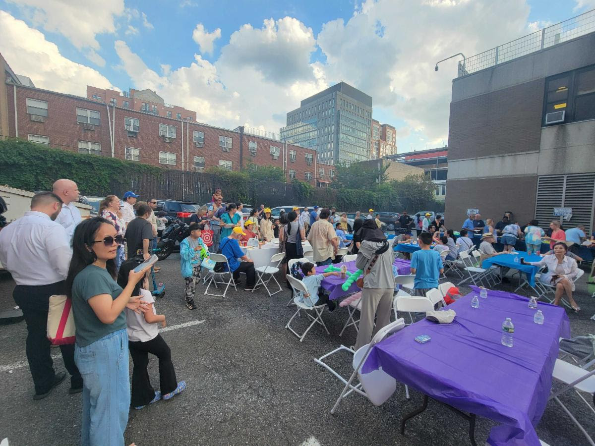 State Senator John Liu and Assembly Member Ed Braunstein also attended the event, which took place amid high temperatures and strong community turnout. The barbecue was sponsored by the Sky View Parc Homeowners Association.