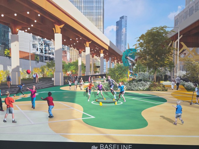 The Baseline, designed by Studio V and LVF Landscape Architects, includes plantings, seating, a temporary art space, a dog run, a multipurpose play yard for sports, and a new children’s playground featuring a 30-foot-tall dragon as its centerpiece. The dragon will feature climbing areas and a slide, officials said Tuesday.