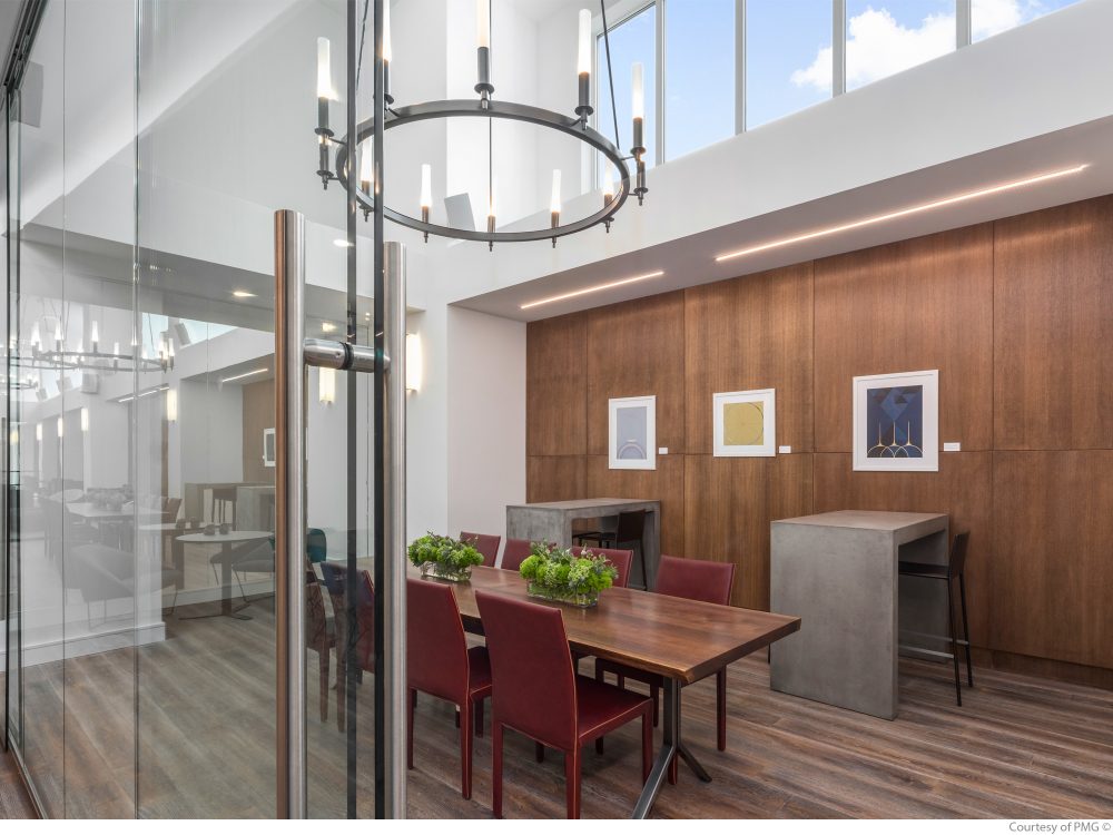 Amenities available to residents of 1 Queens Plaza South include a rooftop pool, two rooftop terraces, a fitness center that also features a professional rock-climbing wall, a yoga room, a game room with a billiards table, multiple lounges, a library, co-working spaces, a children’s playroom, a communal kitchen, a fireplace, an elevator, a 24/7 attended lobby and on-site valet service.