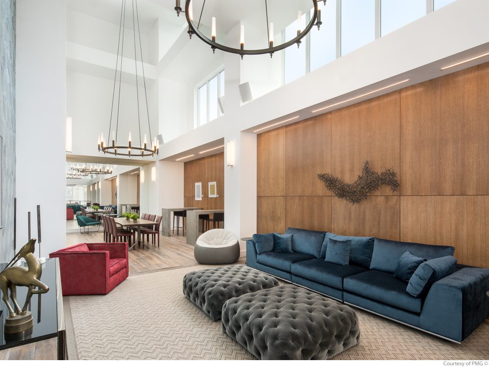 Amenities available to residents of 1 Queens Plaza South include a rooftop pool, two rooftop terraces, a fitness center that also features a professional rock-climbing wall, a yoga room, a game room with a billiards table, multiple lounges, a library, co-working spaces, a children’s playroom, a communal kitchen, a fireplace, an elevator, a 24/7 attended lobby and on-site valet service.