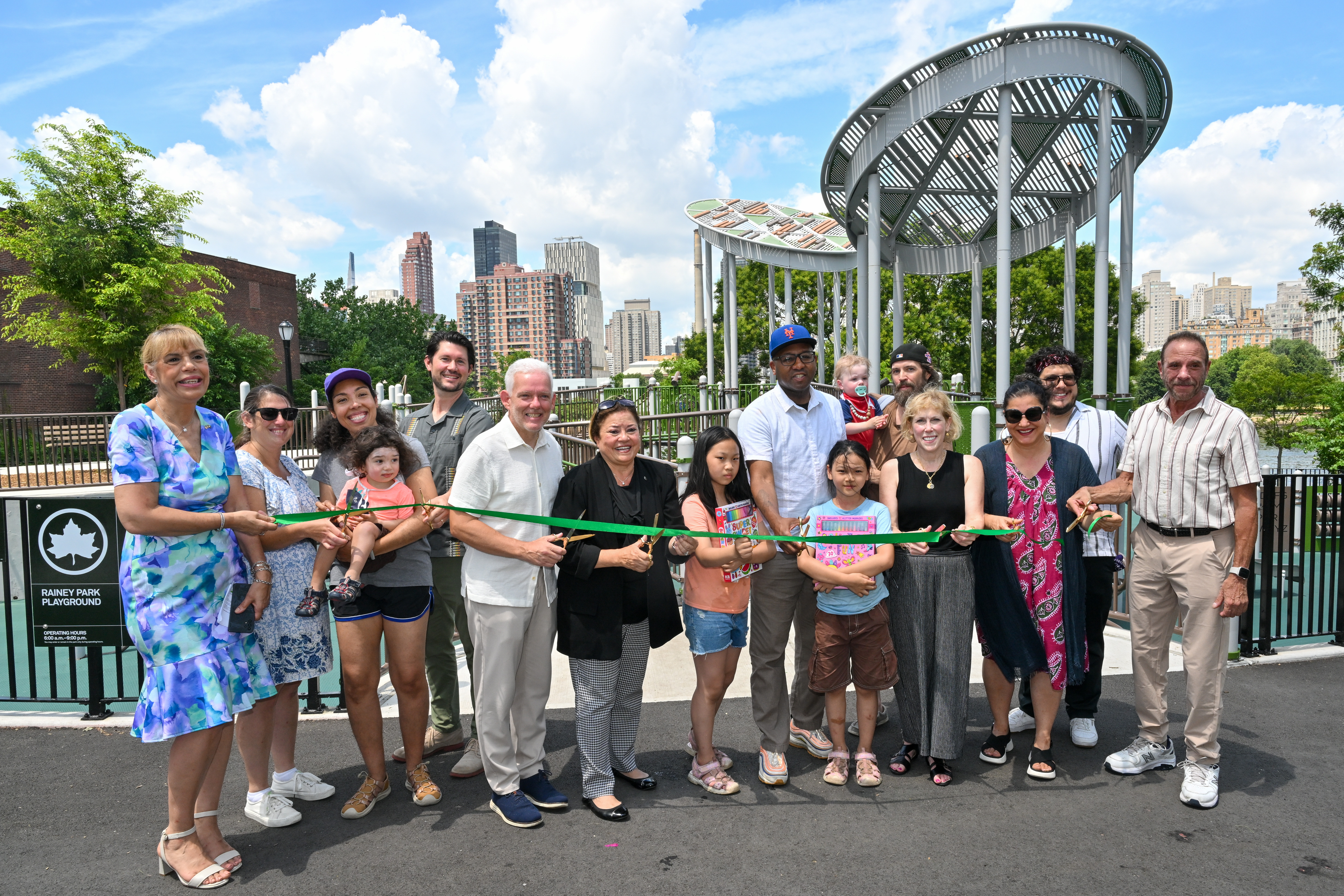 NYC Parks officials and community leaders gathered on Wednesday to celebrate the long-awaited completion of an $8.5 million reconstruction of Rainey Park, a popular waterfront green space in Astoria.