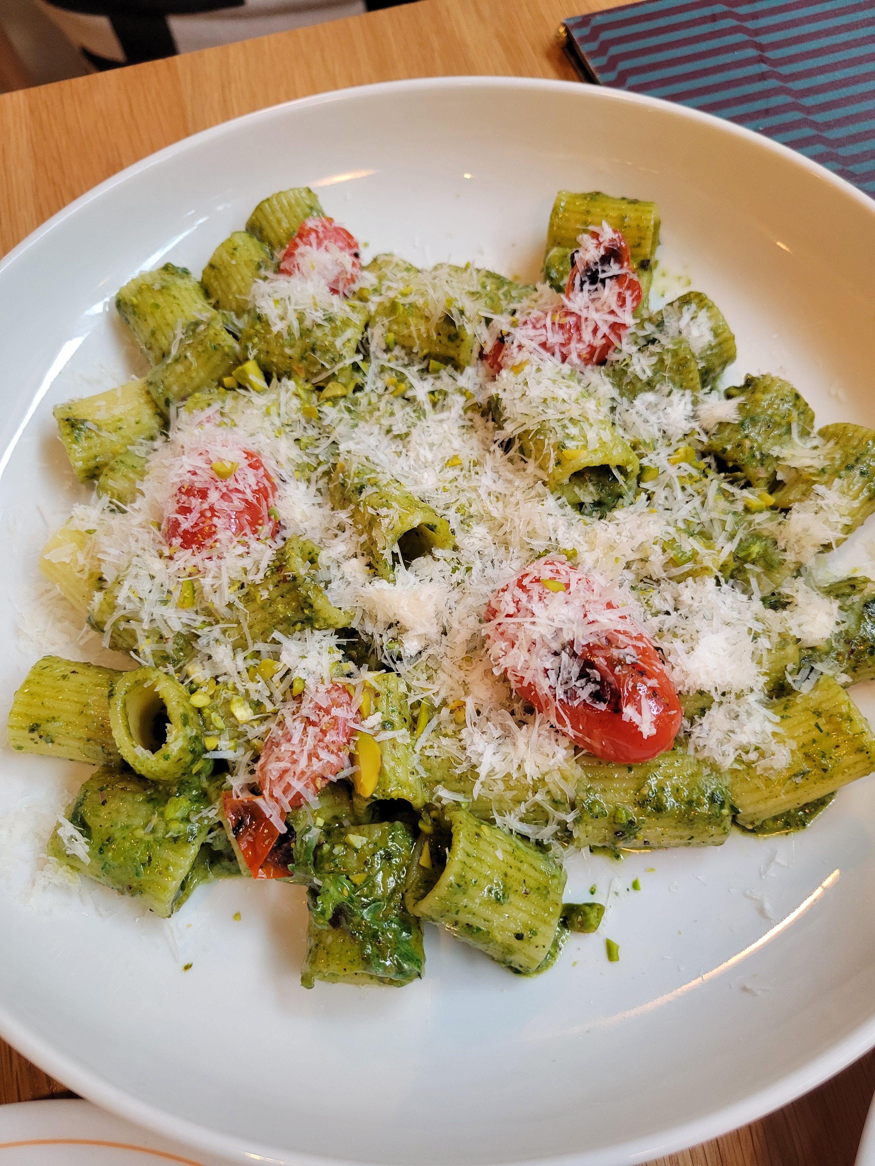 Hundredfold’s menu is inspired by Hollingsworth’s time at The French Laundry, the Michelin-starred restaurant in Napa Valley, California, as well as dishes he loved growing up. While the restaurant has only been open for just a couple of weeks, the venue already has popular must-try dishes, from their steak au poivre, a grilled hangar steak with black peppercorn sauce, as well as their rigatoni pesto, made with pistachio, basil, arugula, and blistered tomatoes. The Hundredfold cheeseburger has also been making a name for itself, made from Snake River Farms American wagyu beef, tomato jam, onion, and secret sauce, as well as their fish taquitos and lobster roll bites.