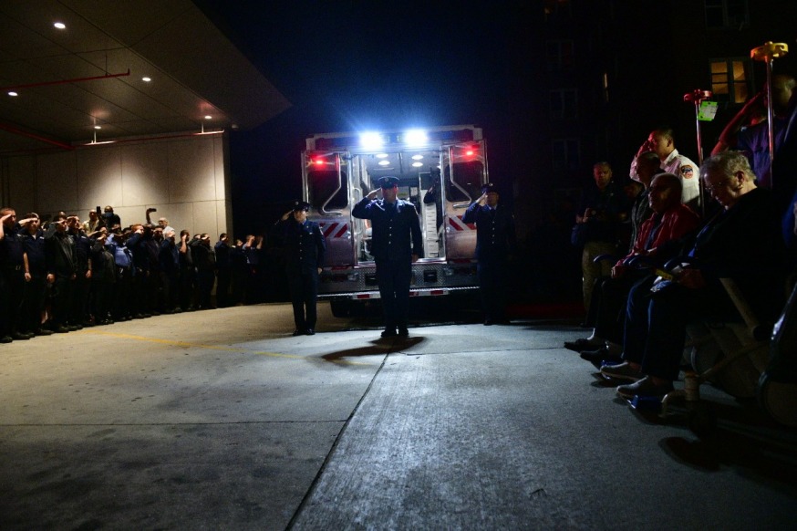 Dozens of FDNY officials assembled outside Mount Sinai last night and formed a guard of honor as her body was removed from the hospital.