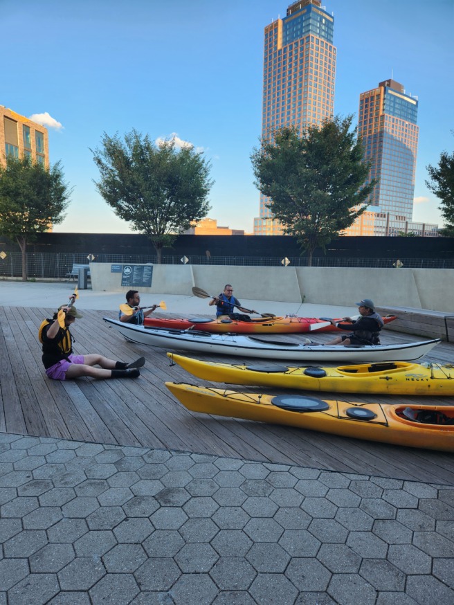 Beginner kayakers being shown proper paddling at the boathouse ramp (Photo courtesy of HPPC)
